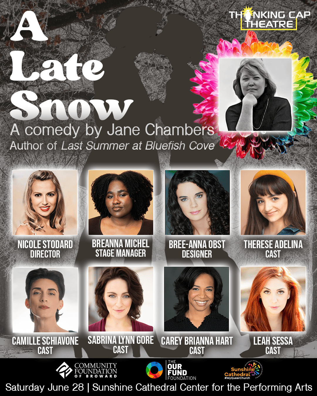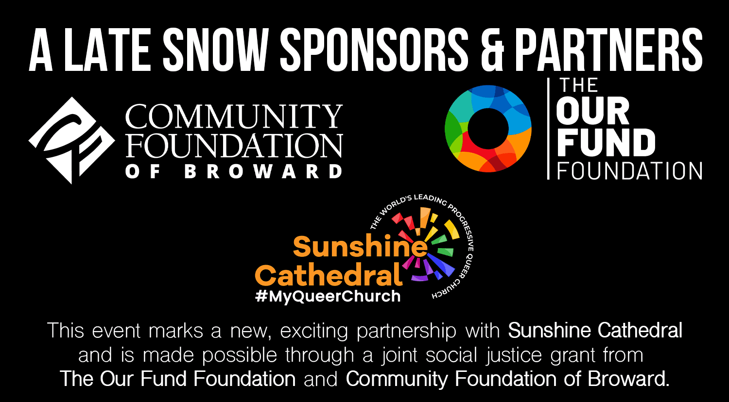A Late Snow is made possible by a joint grant from The Our Fund Foundation and The Community Foundation of Broward County. This program is also presented in partnership with Sunshine Cathedral and the Sunshine Cathedral Center for the Performing Arts.