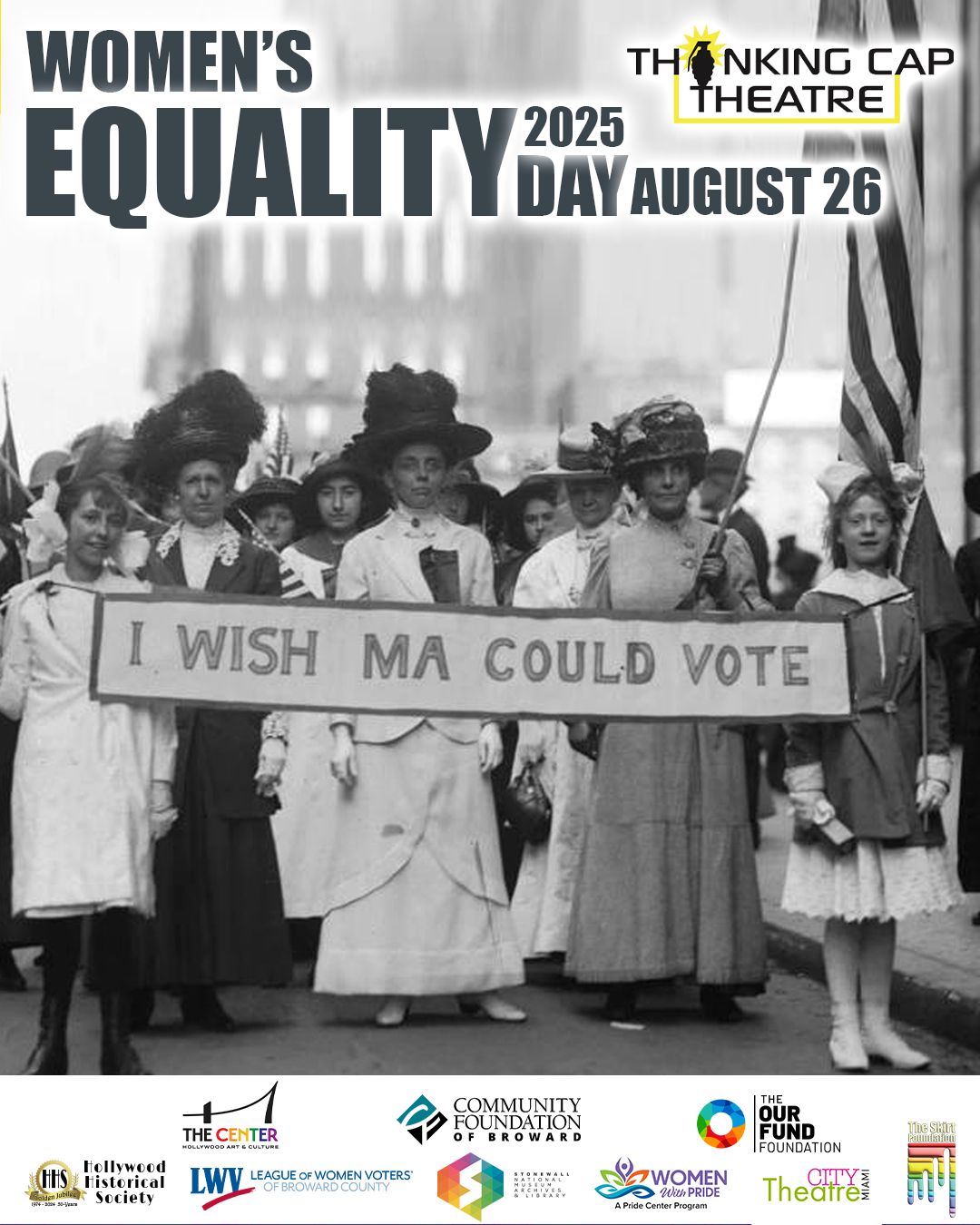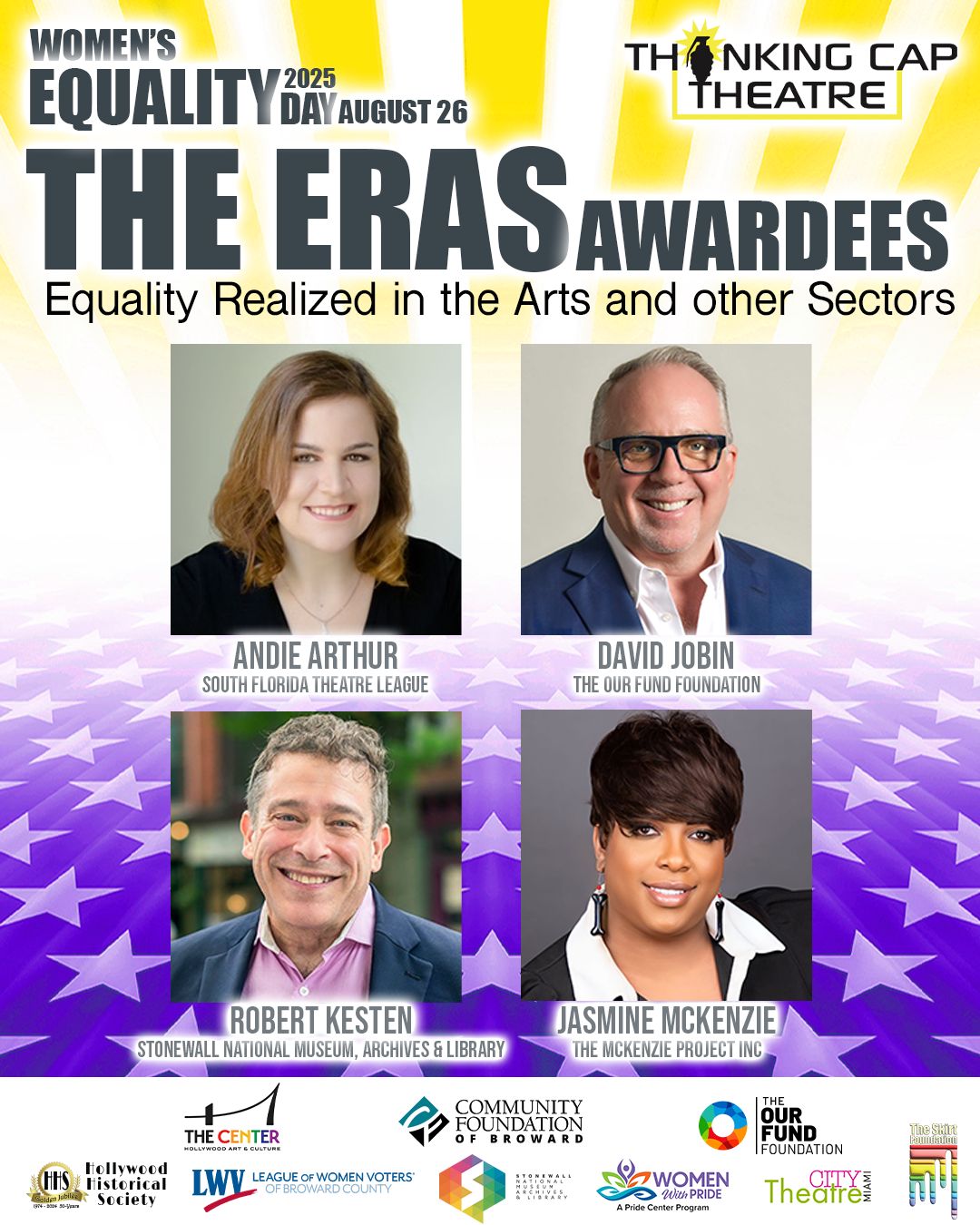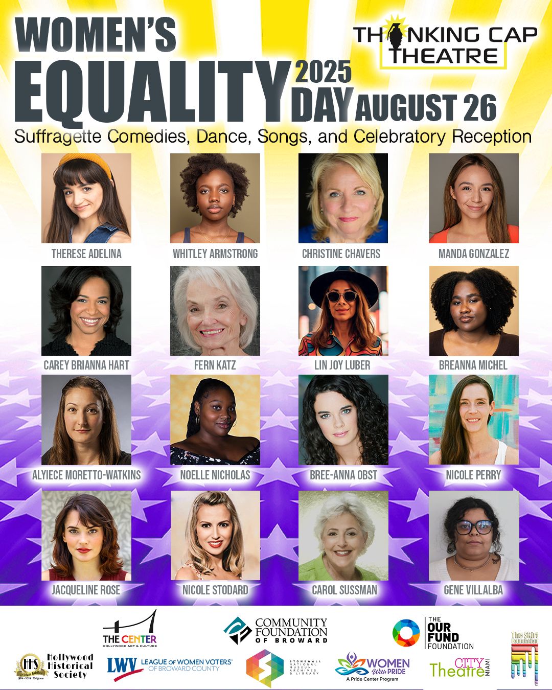 Thank you to community partners Hollywood Art and Culture Center, League of Women Voters of Broward County, Hollywood Historical Society, Stonewall National Museum, Archives, & Library, and The Skirt Foundation.