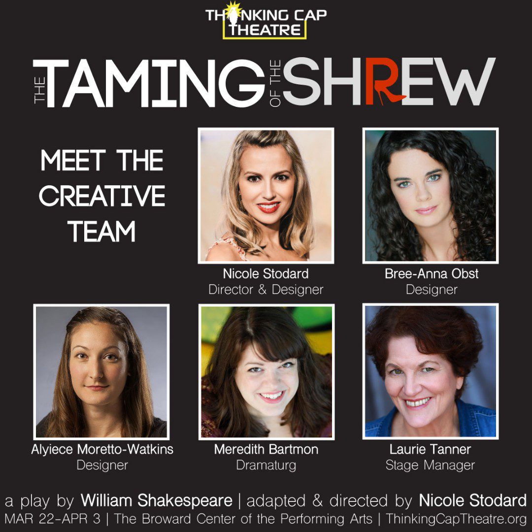 TCT’s last Shakespearean revival, a reimagining of Shakespeare’s great tragedy King Lear, was named one of the top ten plays of 2018 by Boca Magazine. With SHREW, TCT turns to one of Shakespeare's most controversial works, a play that has left audiences divided on whether the playwright was a misogynist or a proto-feminist. Made famous in a mid-twentieth century revival that starred real life sparring lovers Elizabeth Taylor and Richard Burton, this comedy epitomizes the age-old battle of the sexes in the tumultuous courtship of the characters Katherina and Petruchio. Thinking Cap's innovative new staging will allow performers and audiences alike to experience and judge different casting and directorial choices in real time to explore our shifting perceptions of what’s playable, offensive, or funny. “Shakespeare’s works play differently in every age. This particular work presents a meaningful opportunity, in this moment, to ‘hold a mirror up to nature,’ in the words of Hamlet, and to demonstrate the perennial nature of some of our current debates,” says Stodard.